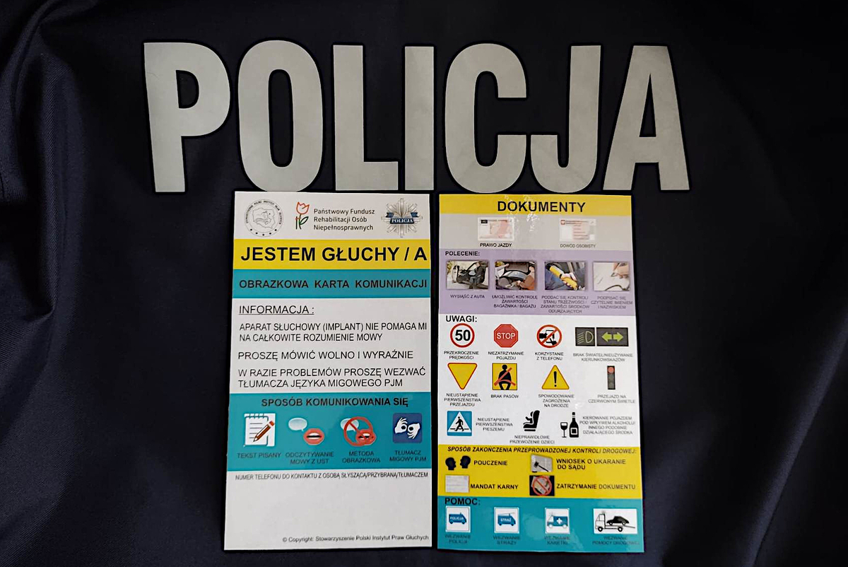 Na koniec spotkanie policjantka rozdała wszystkim kierowcom Obrazkową Kartę Komunikacji przygotowaną przez Policję oraz Stowarzyszenie Polski Instytut Praw Głuchych, która pomoże kierowcom z niepełnosprawnością słuchu porozumieć się z policjantem podczas kontroli drogowej.