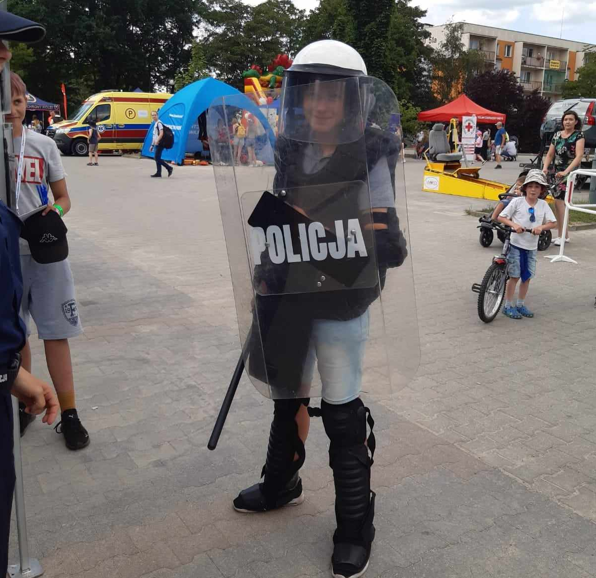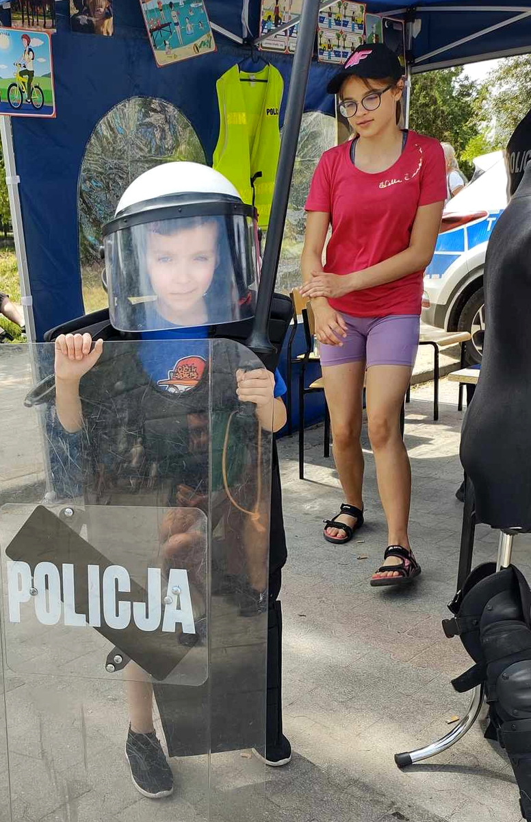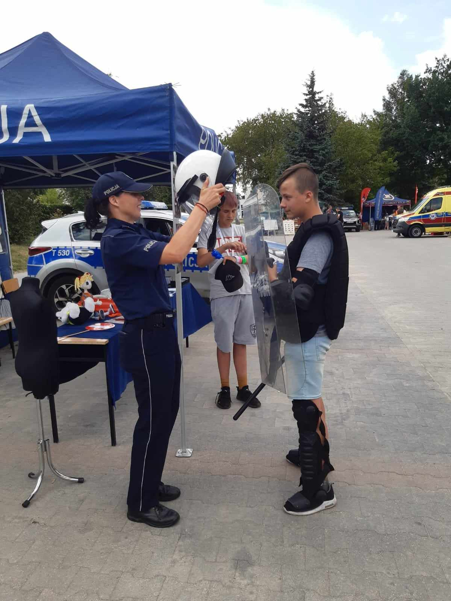Policjanci przygotowali namiot profilaktyczny, przy którym odbywały się konkursy i pogadanki na temat bezpieczeństwa dzieci i młodzieży. W tym roku iławskim funkcjonariuszom pomagał Sierżant Bóbr, który wspólnie z policjantami rozdawał uczestnikom elementy odblaskowe, które założone w odpowiednim miejscu poprawią ich widoczność i zwiększają bezpieczeństwo na drodze. Na policyjnym stanowisku chętni mogli również przymierzyć kamizelkę kuloodporną bądź zestaw przeciwuderzeniowy składający się z kamizelki z ochraniaczami barków i ramion, ochraniaczy nóg, ochraniaczy rąk oraz kasku ochronnego z osłoną twarzy. Zestaw ten funkcjonariusze stosują w celu ochrony przed urazami spowodowanymi niebezpiecznymi przedmiotami występującymi podczas działań związanych z zapewnianiem porządku publicznego przez Policję.