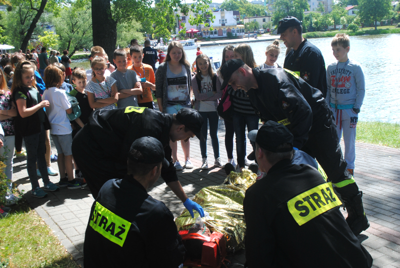 Na zakończenie spotkania, na akwenie wodnym Małego Jezioraka odbył się pokaz ratownictwa wodnego w wykonaniu Policji, Straży Pożarnej, WOPR, z udziałem karetki wodnego pogotowia.