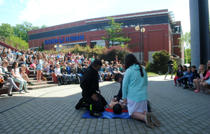 Przedstawiciele iławskiej Policji sierż. szt. Joanna Kwiatkowska i asp. Waldemar Markuszewski mówili o zasadach bezpiecznego wypoczynku, w tym również nad wodą, szeroko pojętego bezpieczeństwa w okresie wakacji, natomiast o zmianach w przepisach ruchu drogowego, zasadach bezpiecznej jazdy na rowerze opowiedział nadkom. Sławomir Kołpacki. Następnie przedstawiciel Komendy Powiatowej Państwowej Straży Pożarnej omówił zasady udzielania pierwszej pomocy i zaprosił chętnych do udziału w pokazie resuscytacji.