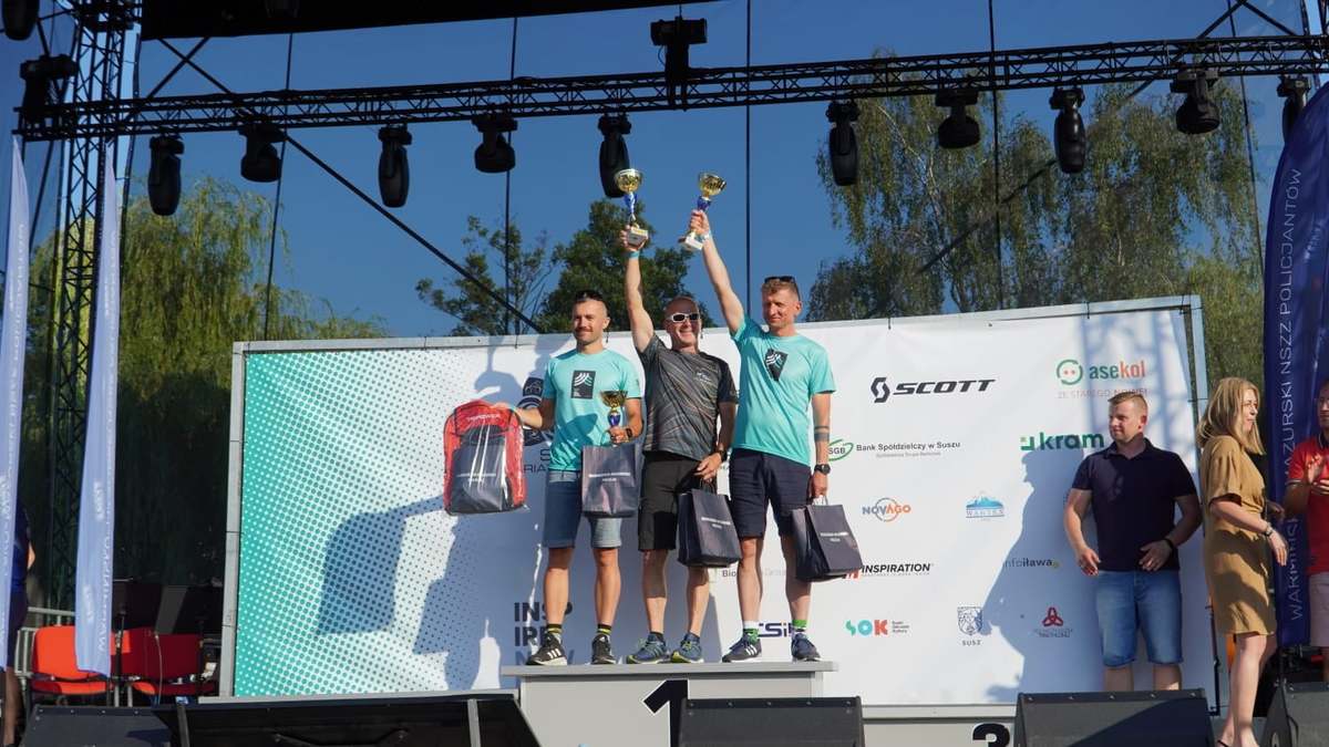 Policjanci nie tylko startowali ale także wspólnie ze strażakami Ochotniczej Straży Pożarnej z Susza oraz wolontariuszami. zabezpieczali trwające trzy dni zawody i towarzyszące im koncerty. Wszyscy byli zadowoleni z tak bezpiecznie spędzonych kilku dni w Suszu i jego okolicach.