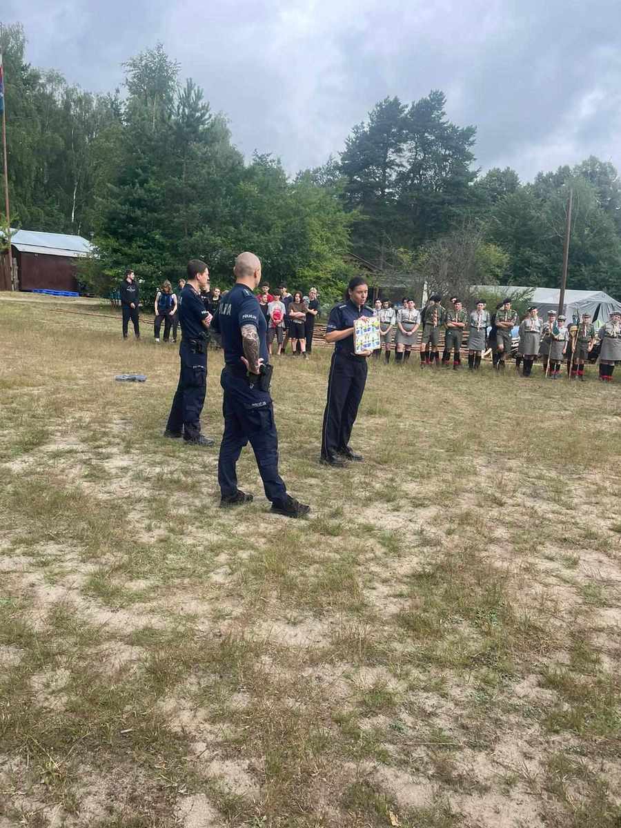 Spotkania połączone ze wspólną zabawą to zawsze okazja do przypomnienia kilku podstawowych zasad, do których należy się stosować, będąc na półkoloniach, odpoczywając u babci czy wyjeżdżając na wycieczkę. Policjanci z iławskiej komendy — asp. szt. Joanna Kwiatkowska, mł. asp. Daniel Rożenko, mł. asp. Tomasz Rybiński wspólnie z pracownikami Sanepidu spotkali się z uczestnikami obozów harcerskich znajdujących się na terenie gminy Iława.