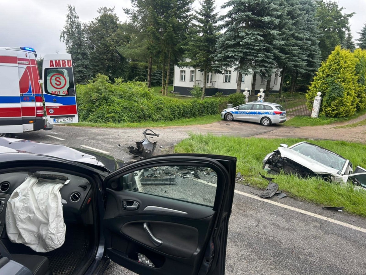 Do najpoważniejszego zdarzenia doszło we wtorek (22.07.2025 r.) kilka minut po godzinie 13:00 na jednej z dróg w gminie Iława. Jak wstępnie ustalili policjanci, 18-latek kierujący fordem z nieustalonej przyczyny zjechał na przeciwległy pas ruchu i doprowadził do czołowego zderzenia z kierującym nissanem. Kierujący obu samochodów, jak i pasażer nissana z obrażeniami ciała zostali przetransportowani do szpitala.