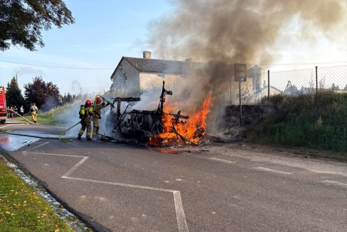 We wczesny sobotni poranek (16.08.2025 r.) w miejscowości Rudzienice doszło do pożaru kampera marki Fiat Ducato, który zapalił się podczas jazdy. Na szczęście nikt z trojga osób, które podróżowały pojazdem, nie odniósł żadnych obrażeń. Mężczyzna prowadzący pojazd oświadczył, że podczas jazdy zauważył wydobywający się z pomieszczenia, gdzie znajdowała się łazienka dym, który bardzo szybko zaczął się rozprzestrzeniać. Niestety, pożar rozprzestrzeniał się bardzo szybko i doszło do całkowitego spalenia się pojazdu.