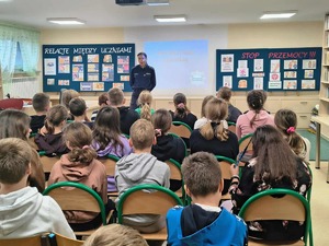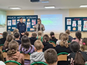 Podczas spotkań w Szkole Podstawowej w Rożentalu i Grabowie - Wałdykach uczestnicy spotkań skupili się na budowaniu atmosfery wzajemnego szacunku, zrozumienia i bezpieczeństwa wśród uczniów. Przed rozmową z policjantami w klasach odbyły się zajęcia profilaktyczne, które pomogły dzieciom i młodzieży lepiej zrozumieć, czym jest przemoc rówieśnicza i jak jej przeciwdziałać. Natomiast funkcjonariusze omówili, co to jest przemoc rówieśnicza oraz czym jest cyberprzemoc, i kto jest za nią odpowiedzialny. Dlatego należy reagować na krzywdę, wspierać osoby doświadczające niesprawiedliwości, sprzeciwiać się nienawiści, a także wspólnie tworzyć bezpieczne i przyjazne szkoły, gdzie relacje oparte są na empatii i solidarności.