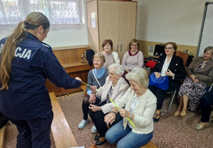 W tym samym czasie mł. asp. Anna Sznarkowska z zespołu ds. prasowo – informacyjnych uczestniczyła w spotkaniu z okazji Dnia Nauczyciela zorganizowanym dla emerytowanych pracowników Przedszkola Miejskiego nr 6 w Iławie. Policjantka przypomniała uczestnikom spotkania, podstawowe zasady ruchu drogowego, informując jednocześnie, dlaczego pieszy to niechroniony uczestnik ruchu drogowego. Następnie wszystkim uczestnikom spotkania rozdała odblaski, aby każdy mógł świecić przykładem.