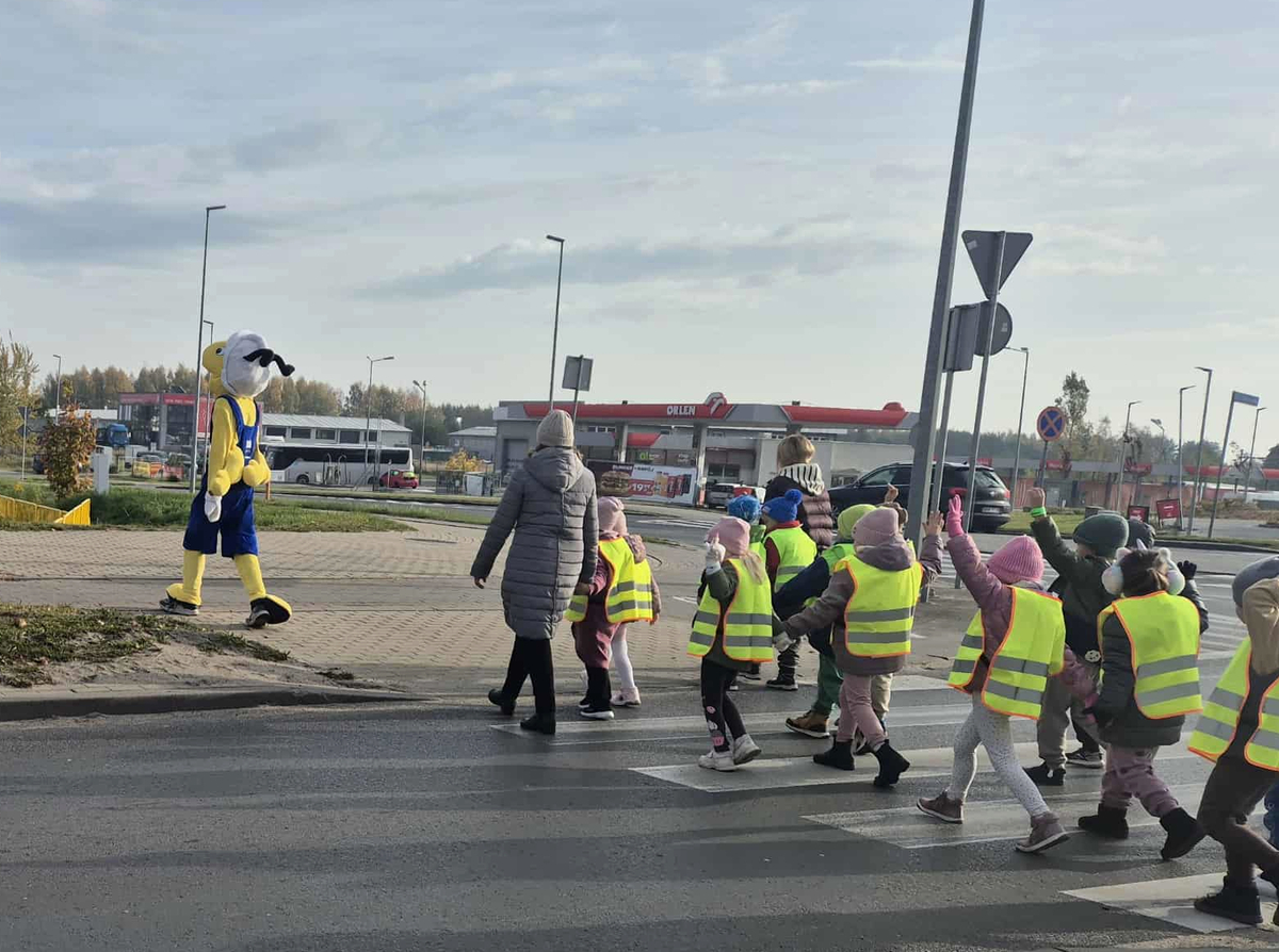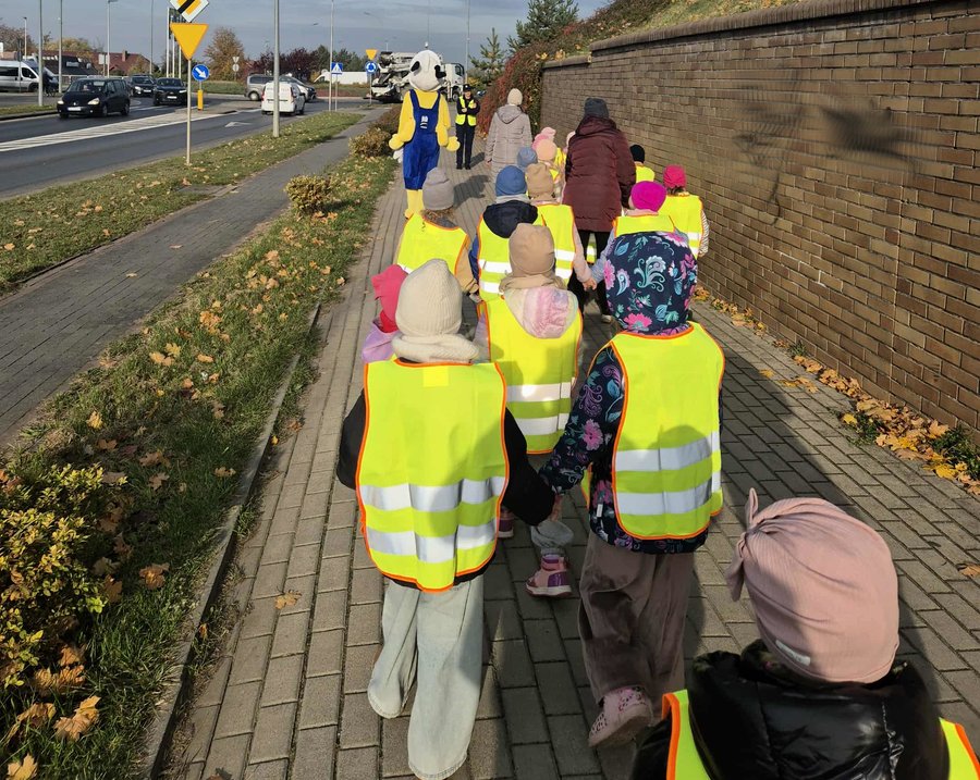 Następnie wszyscy, w tym również maskotka mrówka, wybrali się na spacer. Bo przecież wszyscy wiemy, że trening czyni mistrza. Policjantki wspólnie z maskotką mrówką pokazały dzieciom krok po kroku, jak prawidłowo zatrzymać się przed jezdnią, upewnić się, że można bezpiecznie przejść i dopiero wtedy wejść na pasy. Dzięki temu najmłodsi mogli od razu zastosować w praktyce zdobytą wiedzę.