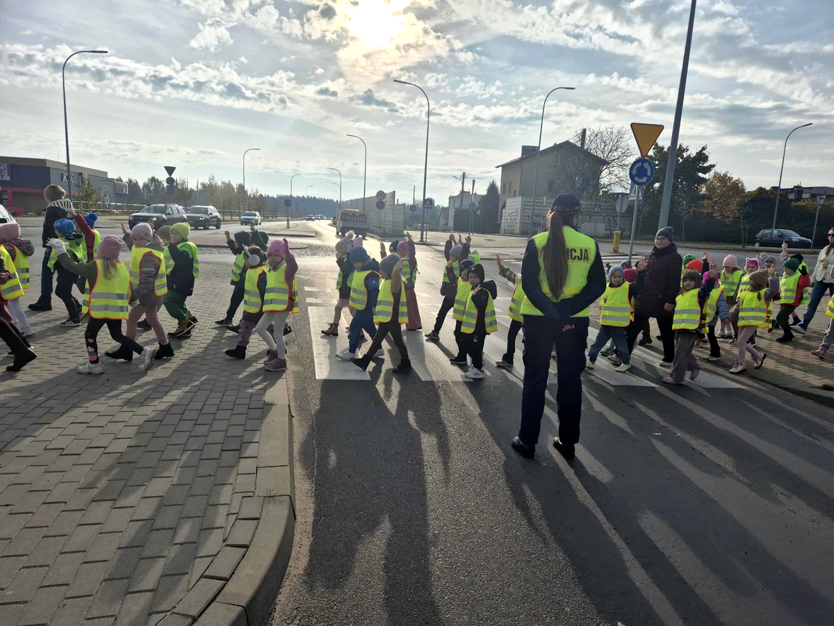 Podczas wizyty przedszkolaki poznały podstawowe zasady bezpiecznego poruszania się po drodze. Wspólnie z gośćmi omówiły, jak prawidłowo przechodzić przez jezdnię, dlaczego zawsze należy korzystać z pasów oraz jak ważne jest noszenie odblasków. Policjantki przypomniały najmłodszym, dlaczego nawet jak mamy zielone światło należy się zatrzymać i zachować szczególną ostrożność na drodze.