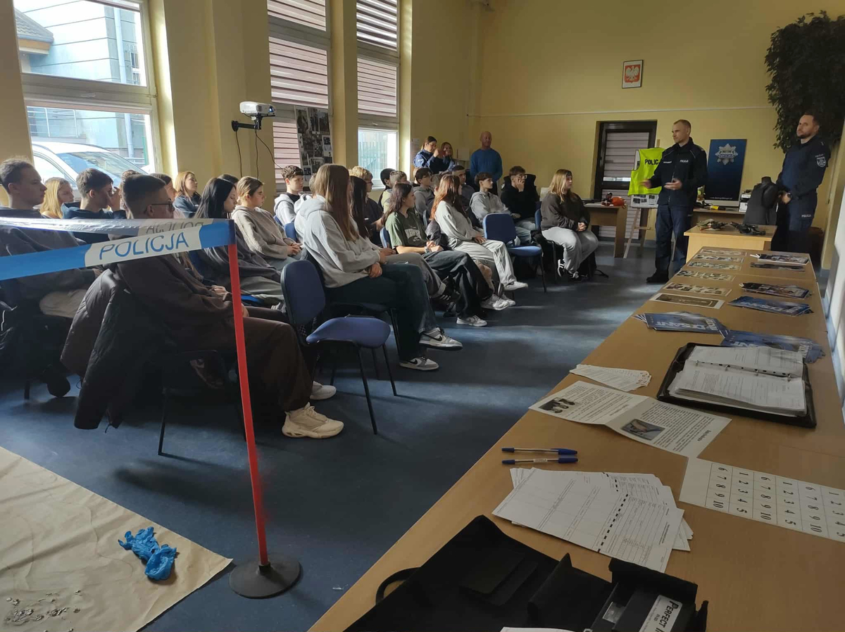 W środę (29.10.2025 r.) odbyły się pierwsze zajęcia, które w Komendzie Powiatowej Policji w Iławie poprowadziły iławskie policjantki. Podczas zajęć funkcjonariuszki przybliżyły uczniom historię i rozwój Policji oraz udział policjantów w odzyskaniu niepodległości. Następnie na przygotowanych stacjach zaprezentowały, jak wygląda codzienna praca w poszczególnych wydziałach Komendy Powiatowej Policji w Iławie. Natomiast Naczelnik Wydziału Prewencji kom. Robert Mazurowski oraz asystent Zespołu ds. Kadr i Szkolenia mł. asp. Andrzej Pietrzak omówili z jakiej broni na co dzień korzystają funkcjonariusze.