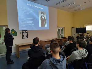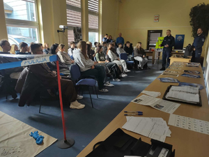 Pierwsze lekcje funkcjonariuszy z Komendy Powiatowej Policji w Iławie z uczniami klasy mundurowej