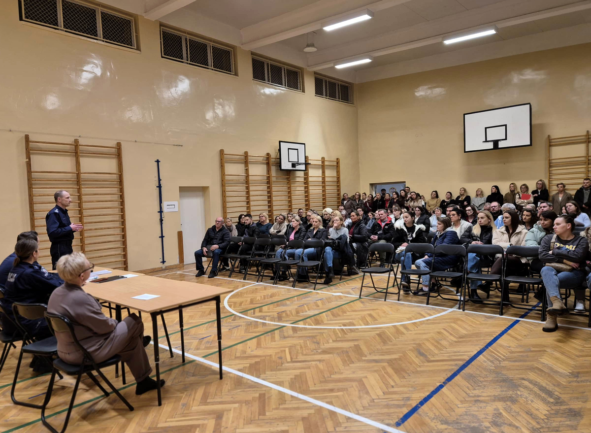 W środę (19.11.2025 r.) o godz.17:00 na sali gimnastycznej Szkoły Podstawowej nr 4 w Iławie odbyła się debata społeczna – ewakuacyjna zorganizowana przez policjantów Komendy Powiatowej Policji w Iławie przy współpracy ze Szkołą Podstawową nr 4 w Iławie. Hasłem przewodnim było bezpieczeństwo dzieci i młodzieży, cyberprzemoc oraz hejt, a także odpowiedzialność karna nieletnich. W dyskusji wzięli udział rodzie uczniów Szkoły Podstawowej nr 4 w Iławie oraz nauczyciele, pedagodzy i policjanci.