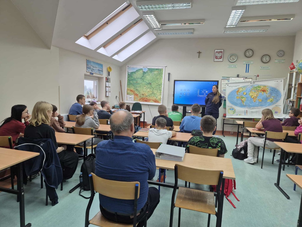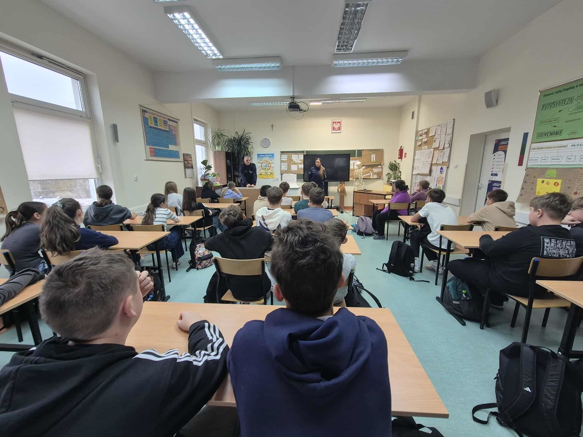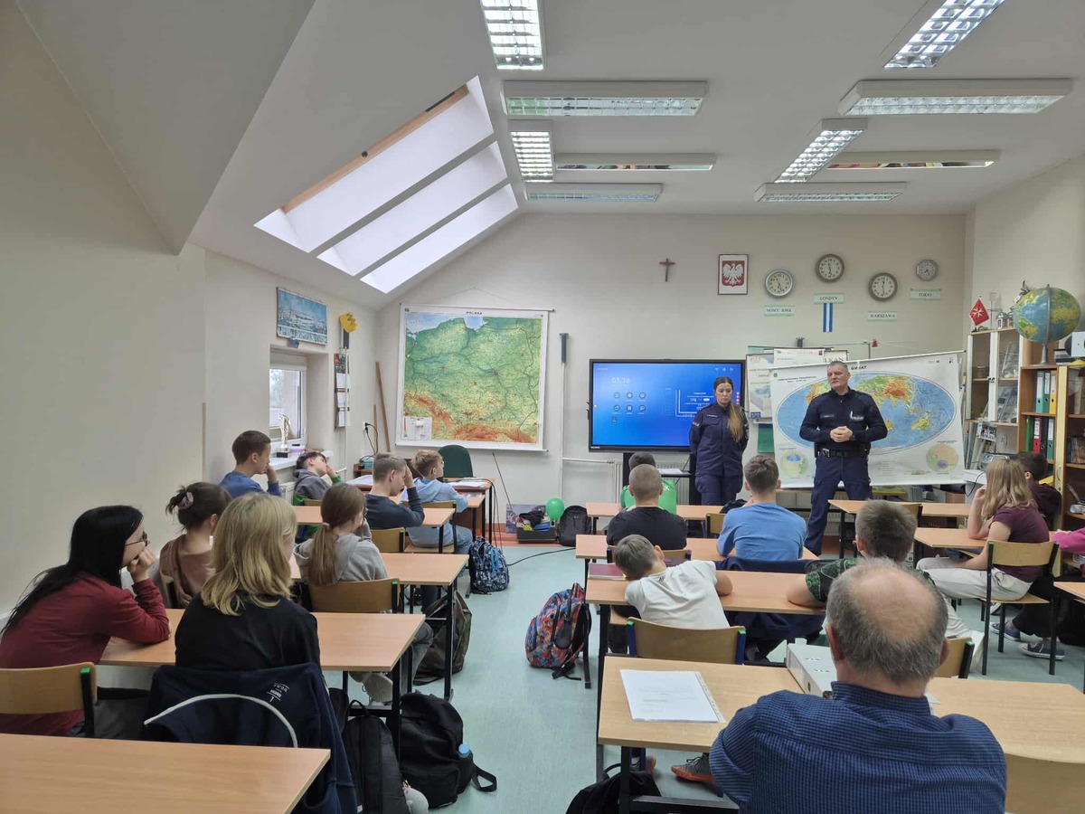 Dzielnicowy asp. Sławomir Gross, asp. szt. Joanna Kwiatkowska oraz mł. asp. Anna Sznarkowska spotkali się z młodzieżą Szkoły Podstawowej w Ząbrowie. Tematem spotkań była odpowiedzialność nieletnich na podstawie ustawy o wspieraniu i resocjalizacji nieletnich, spożywanie alkoholu, zażywanie środków odurzających, a także hejt rówieśniczy.