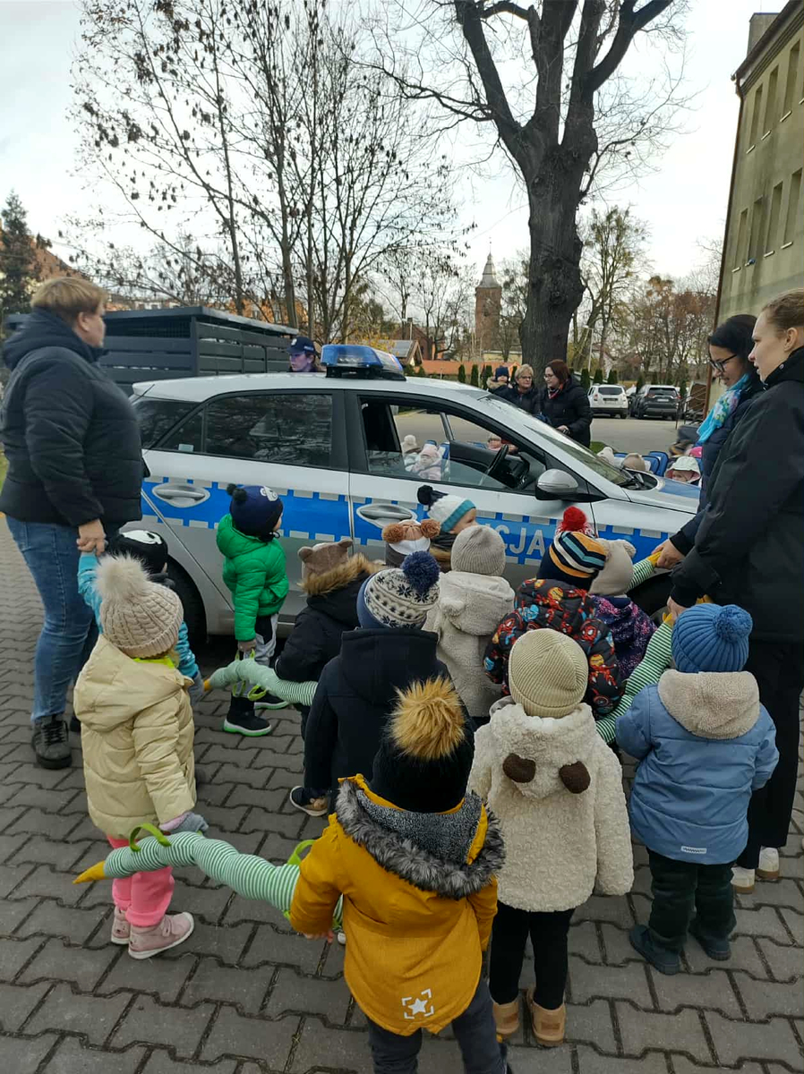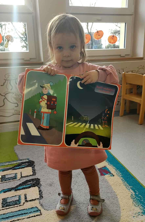 Dzięki temu spotkaniu wszystkie maluchy wiedzą już o tym, że idąc na grupową wycieczkę, muszą zachować szczególną ostrożność, słuchać poleceń opiekuna, a podczas przechodzenia przez drogę powinny podnieść rękę do góry.