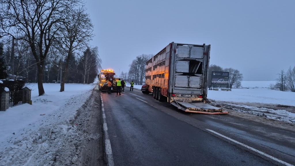 W piątkowy poranek, chwilę przed godziną 10:00 (16.01.2026 ) na drodze krajowej numer 15 w rejonie miejscowości Lubawa, doszło do bardzo niebezpiecznego zdarzenia z udziałem pojazdu ciężarowego przewożącego żywy inwentarz. Na miejscu policjanci ujawnili pojazd ciężarowy marki Scania wywrócony na bok w przydrożnym rowie i poszkodowanego kierującego 35-latka. W pojeździe znajdowało się 170 sztuk trzody chlewnej, niestety w wyniku wypadku, nie wszystkie zwierzęta przeżyły. Wstępne ustalenia pracujących na miejscu funkcjonariuszy wskazały, że do wypadku przyczynił się inny kierujący, który oddalił się z miejsca zdarzenia. Utrudnienia na tym odcinku drogi, wynikające z konieczności zabezpieczenia zwierząt i podniesienia pojazdu ciężarowego, trwały kilka godzin. Dalsze czynności w tej sprawie będą prowadzić iławscy funkcjonariusze.