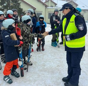 Policjanci we wtorek (27.01.2026 r.) spotkali się z grupą ministrantów z Parafii pw. św. Barbary w Złotowie, aby przypomnieć o podstawowych zasadach bezpiecznego zimowego wypoczynku na nartostradach: