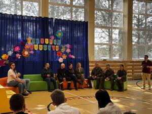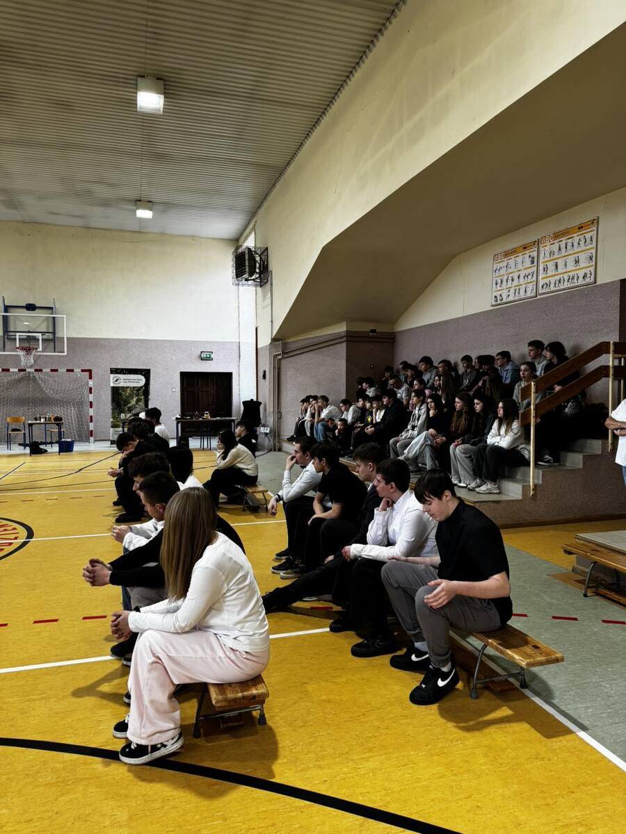 Podczas spotkania odbyła się debata, w której uczniowie klasy ósmej zadawali pytania zaproszonym gościom.