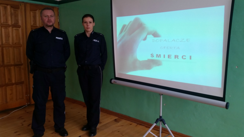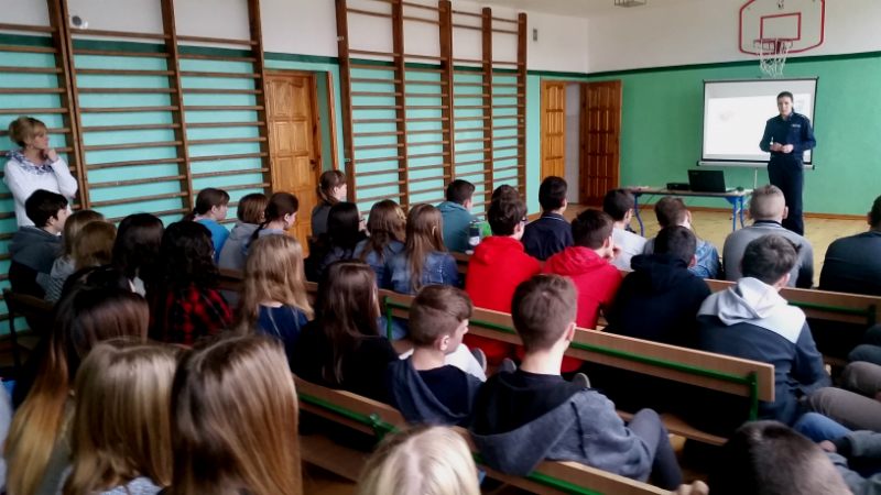 Funkcjonariusze za pomocą przygotowanej prezentacji przybliżyli uczniom problematykę uzależnienia od dopalaczy i narkotyków. Tego typu działania profilaktyczne umożliwiające bezpośredni dialog to okazja dla młodzieży, aby porozmawiać z fachowcem o sprawach, które ich dotyczą. To szansa na podniesienie swojej świadomości o uzależnieniach i konsekwencjach prawnych codziennego postępowania, a także możliwość uzyskania odpowiedzi na nurtujące pytania. Omawiając tematy dotyczące narkotyków jak i dopalaczy policjanci przedstawili młodzieży także najważniejsze zagadnienia dot. odpowiedzialności nieletnich. Poinformowali uczestników spotkania co to jest demoralizacja przedstawiając jednocześnie jakie środki wychowawcze i poprawcze mogą być zastosowane wobec osoby nieletniej. Uczniowie dowiedzieli się, jak klasyfikowane są różne działania naruszające prawo, i jaka grozi za nie kara. Policjanci podali liczne przykłady ze swojej pracy, obrazujące jak często z pozoru niewinne żarty prowadzą do nieszczęść, za które ktoś później odpowiada przed sądem.