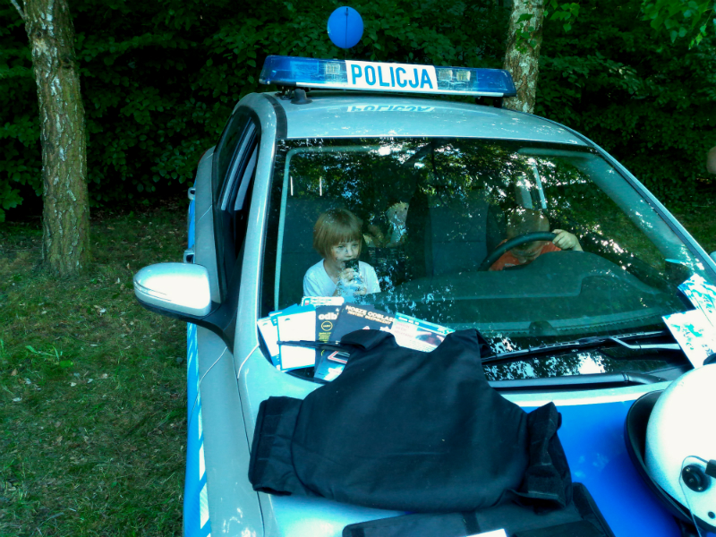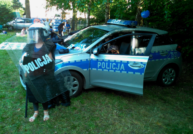 Kto chciał przez chwilę poczuć się na funkcjonariuszem mógł wsiąść do radiowozu, włączyć sygnały dźwiękowe i świetlne czy przymierzyć zestaw przeciwuderzeniowy, który zakładają policjanci podczas zabezpieczenia imprezy masowej czy meczu. Składa się on z kamizelki z ochraniaczami barków i ramion, ochraniaczy nóg, ochraniaczy rąk oraz kasku ochronnego z osłoną twarzy. Zestaw ten funkcjonariusze stosują w celu ochrony przed urazami spowodowanymi niebezpiecznymi przedmiotami np. rzucanymi przez kibiców butelek, kamieni czy desek występującymi podczas działań związanych z zapewnianiem porządku publicznego przez Policję. Podczas wspólnej zabawy uczestnicy festynu mogli wykonać sobie również pamiątkowe odciski palców oraz przymierzyć kamizelkę kuloodporną.