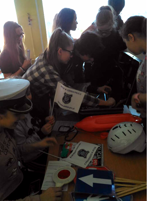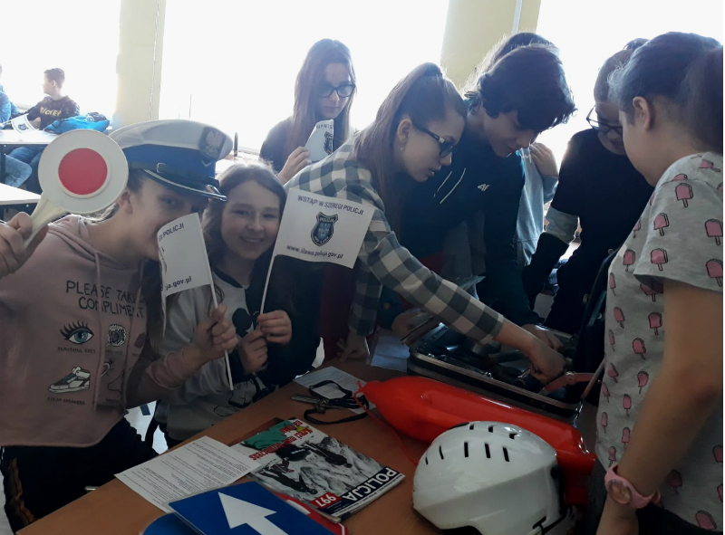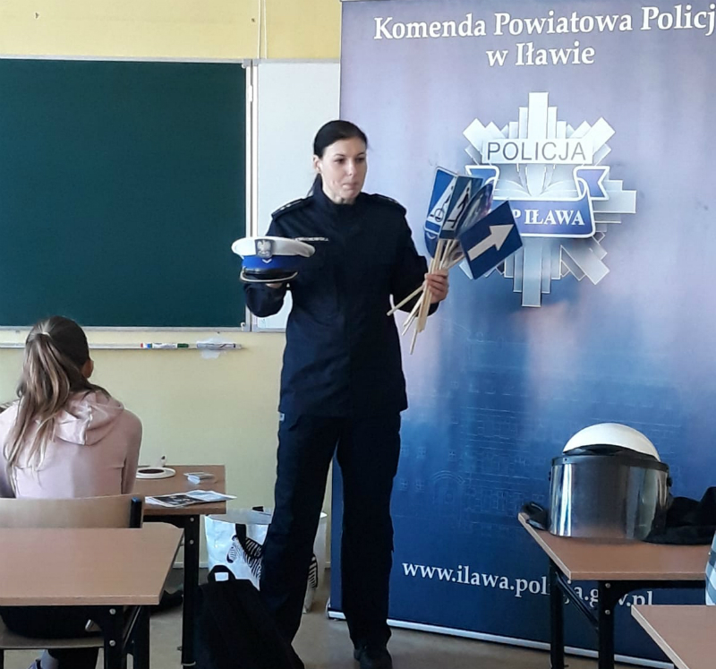Spotkanie policjanci rozpoczęli od przedstawienia jak przebiegała ich służba począwszy od przyjęcia do obecnie zajmowanego stanowiska na przykładzie przygotowanego stoiska informacyjnego, na którym zostały zaprezentowane poszczególne wydziały iławskiej jednostki policji. Uczniowie mogli zapoznać się m. in:. ze strukturą Komendy Powiatowej Policji w Iławie oraz dowiedzieć się czym na co dzień zajmują się policjanci w wydziale prewencji. Mundurowi omówili czemu funkcjonariusze ubierają się w „PZ-ta” kiedy idą na mecz oraz po co patrolowi wodnemu pływak czy dmuchana piłka. Młodzież dowiedziała się również o tym, że policjanci podczas zimy patrolują także stoki narciarskie dbając o bezpieczeństwo osób tam wypoczywających.