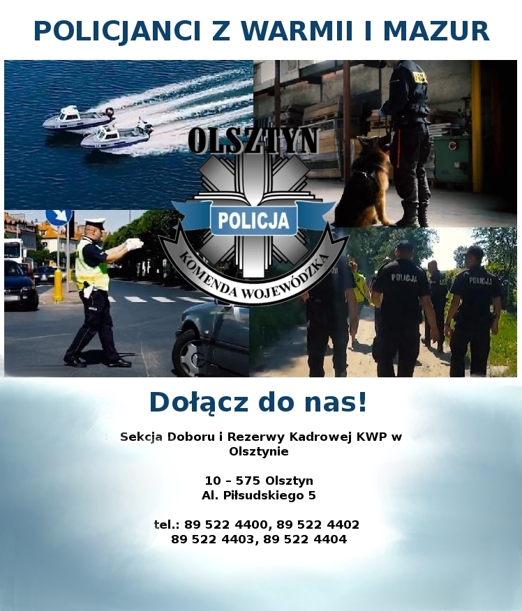 Szczegółowe informacje dotyczące naboru kandydatów do służby w Policji na terenie województwa warmińsko-mazurskiego w 2019 roku można znaleźć na stronie Komendy Wojewódzkiej Policji w Olsztynie w zakładce "Rekrutacja do służby w Policji"