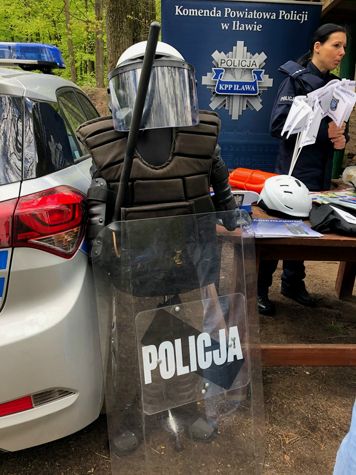 Policjantka korzystając z przygotowanego stanowiska prezentującego poszczególne wydziały Komendy Powiatowej Policji w Iławie opowiedziała zebranym czym zajmują się policjanci prewencji i po co im kask na narty oraz dlaczego ruch drogowy zamiast metrówki używa kółka do pomiaru odległości. Uczestnikom spotkania została również zaprezentowana kamizelka kuloodporną oraz zestaw przeciwuderzeniowy, który składa się z kamizelki z ochraniaczami barków i ramion, ochraniaczy nóg, ochraniaczy rąk oraz kasku ochronnego z osłoną.