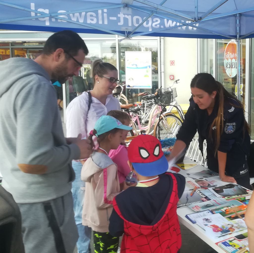 W minioną sobotę na Bulwarze Jana Pawła II nad Małym Jeziorakiem odbyły się biegi przedszkolaków i uczniów szkół podstawowych pod hasłem „Ja też lubię biegać”. Ta znana już iławska impreza biegowa dla najmłodszych stała się doskonałą okazją do promowania zasad bezpieczeństwa. Policjanci, którzy na co dzień zobowiązani są do utrzymywania sprawności fizycznej przygotowali dla dzieci, które przyszły wraz z opiekunami, zabawy promujące bezpieczne uprawianie sportu. Tuż obok mety biegu usytuowane było stoisko policyjne, gdzie najmłodsi biegacze, ich rodzice czy osoby kibicujące dzieciom mogły poznać podstawowe zasady bezpiecznej jazdy na rowerze i prawidłowych zachowań na drodze. Funkcjonariusze prezentowali sprzęt, który wykorzystują w codziennej służbie, w tym policyjny radiowóz, do którego można było wsiąść czy posłuchać sygnałów dźwiękowych pojazdu. Zainteresowani mogli też przymierzyć kamizelkę kuloodporną. Mundurowi rozmawiali też o bezpieczeństwie w ruchu drogowym, Krajowej Mapie Zagrożeń Bezpieczeństwa i wyjaśniali zasady jej funkcjonowania. Przygotowali zagadki i krzyżówki dla najmłodszych dotyczące znajomości znaków drogowych czy bezpiecznych zachowań na drodze, w domu czy na podczas zabaw na podwórku. Za ich rozwiązanie czekały drobne upominki. Nie zabrakło tez rozmów o służbie w policji. Policjanci zachęcali młodzież i dorosłych do spróbowania swoich sił w procesie rekrutacji do służby. Wyjaśniali, jakie warunki trzeba spełnić by zostać policjantem, na czym polega ich praca oraz jak przebiegają poszczególne etapy rekrutacji.