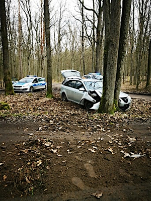 Iławscy policjanci ruchu drogowego zauważyli, iż jedną z dróg w gminie jedzie mazdą znany im 22 – latek. Funkcjonariusze wiedzieli, że mężczyzna ma cofnięte uprawnienia do kierowania pojazdami mechanicznymi. Mundurowi postanowili zatrzymać pojazd do kontroli drogowej i porozmawiać z jego kierowcą. Mężczyzna jednak nie reagował na sygnały dźwiękowe i świetlne wzywające go do zatrzymania się, wręcz przeciwnie – przyśpieszył. Funkcjonariusze ruszyli za nim. Mężczyzna kontynuował ucieczkę ulicami Iławy w kierunku miejscowości Wikielec. W pewnym momencie kierujący osobową mazdą stracił panowanie nad pojazdem i uderzył w przydrożne drzewo. Mundurowi zatrzymali mężczyznę i przetransportowali go do policyjnej celi. 22 – latek był trzeźwy ale została pobrana mu krew do badania na zawartości substancji zabronionych w organizmie.