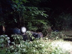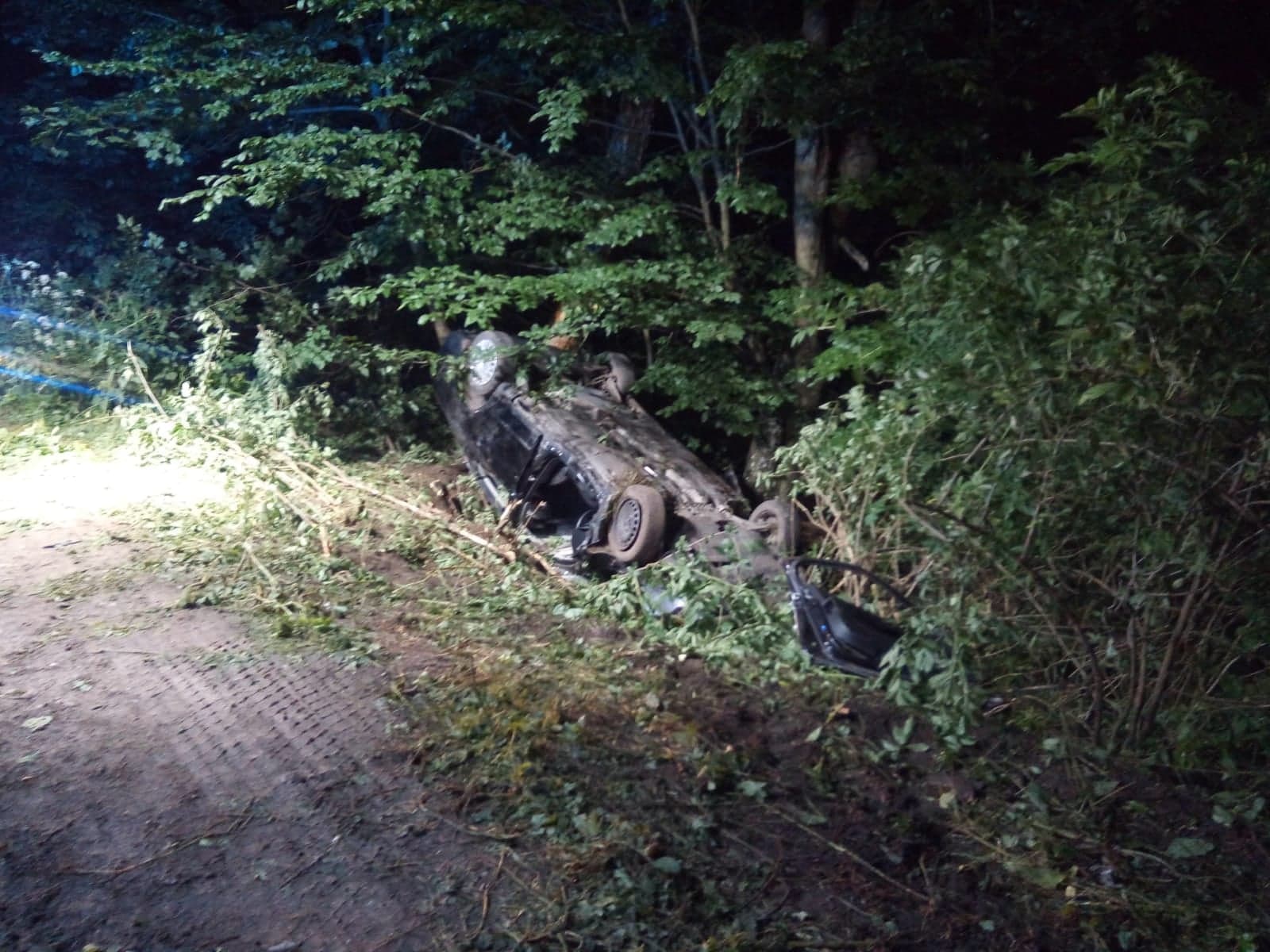 W piątek kilka minut po godzinie 20:00 oficer dyżurny iławskiej policji został poinformowany o zdarzeniu drogowym. Funkcjonariusze natychmiast pojechali na miejsce. Okazało się, że 35 – latek kierujący vw jadąc drogą gruntową na prostym odcinku drogi nie dostosował prędkości do warunków drogowych, w wyniku czego stracił panowanie nad pojazdem a następnie zjechał na prawe pobocze wywracając vw, który oparł się bagażnikiem o drzewo. Kierujący oraz pasażerowie z poważnymi obrażeniami ciała zostali przetransportowali do szpitali. Okazało się, że 35 – latek kierował vw mając 2,4 promila alkoholu w organizmie.