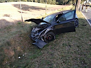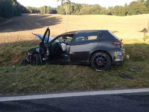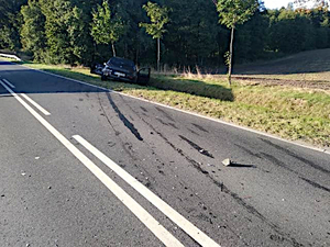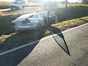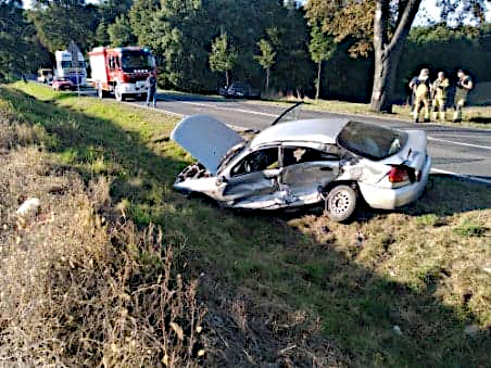 W piątek kilka minut po godzinie 15:00 kierujący mitsubishi nie ustąpił pierwszeństwa podczas włączania się do ruchu i doprowadził do zderzenia z Alfą Romeo, po czym oba pojazdy zjechał do przydrożnego rowu. Kierujący mitsubishi z poważnymi obrażeniami ciała został przetransportowany do szpitala.