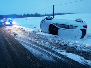 W środę (20.01.2021r.) kilka minut po godzinie 6:00 oficer dyżurny został poinformowany o zdarzeniu drogowym. Funkcjonariusze natychmiast pojechali na miejsce. Okazało się, że 31-latka kierująca kią nie dostosowała prędkości do warunków ruchu w wyniku czego straciła panowanie nad pojazdem, zjechała na przeciwległy pas ruchu po czym wjechała do przydrożnego rowu wywracając pojazd. Kobiecie na szczęście nic poważnego się nie stało. Za popełnione wykroczenie została ukarana mandatem.
