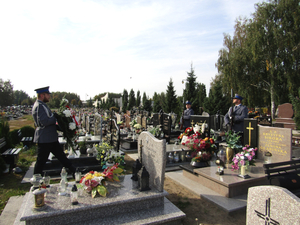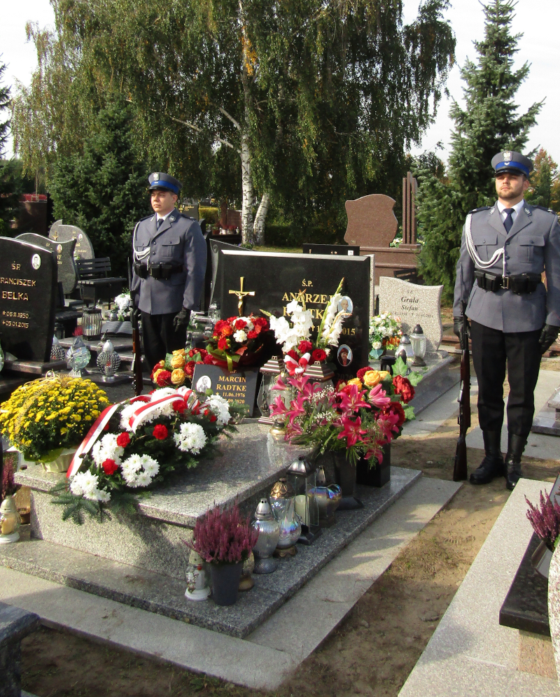 Przed mogiłą policjanci wystawili posterunek honorowy. Po złożeniu kwiatów wszyscy minutą ciszy oddali cześć zmarłemu Komendantowi Powiatowemu Policji w Iławie mł. insp. Marcinowi Radtke. Sygnalista z Młodzieżowej Orkiestry Dętej zagrał melodię „Śpij kolego”.