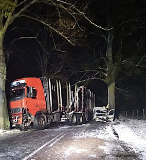 Tymczasem w gminie Zalewo kierujący fiatem nie dostosował prędkości do panujących warunków drogowych w wyniku czego zjechał na pobocze a następnie wybity i obrócony najechał na nadjeżdżający z przeciwka volvo wraz z naczepą. Kierujący fiatem z obrażeniami ciała został przetransportowany do szpitala.