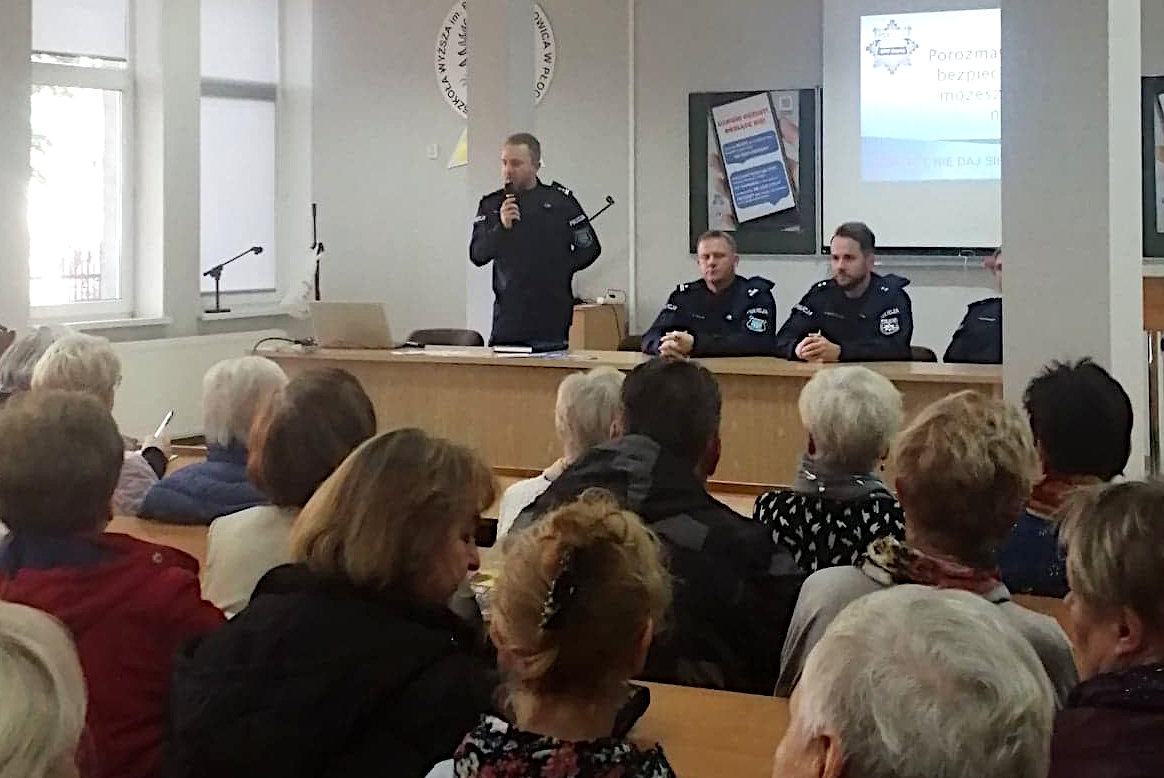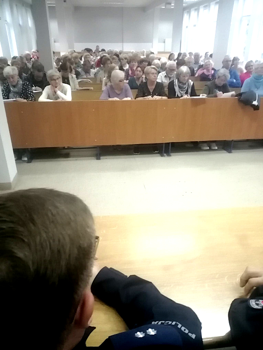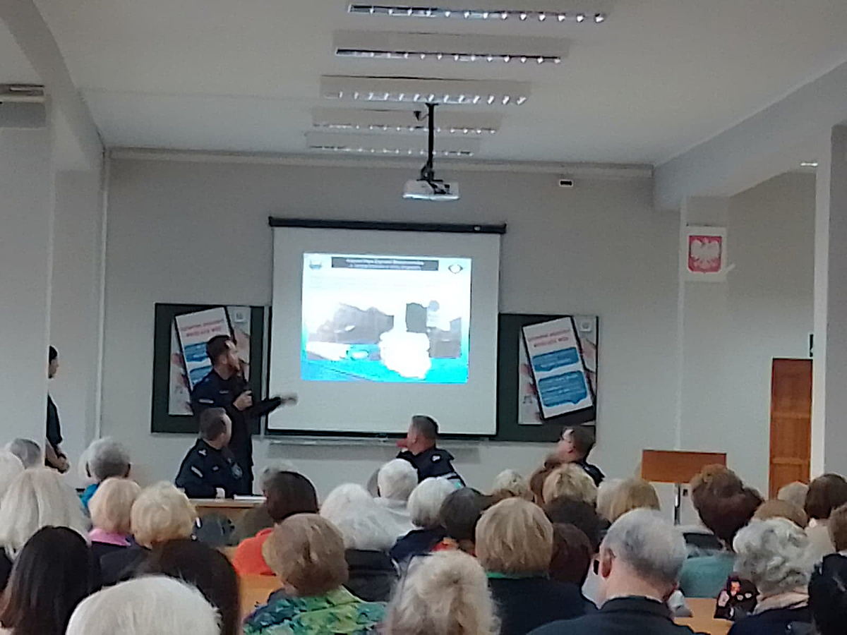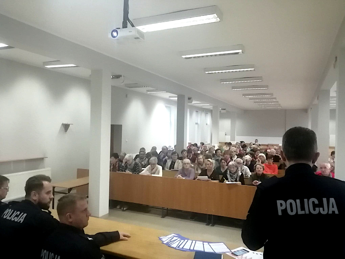 „Porozmawiajmy o bezpieczeństwie – możesz mieć na nie wpływ”- pod tym hasłem odbyła się debata w Szkole Wyższej im. Pawła Włodkowica w Iławie z uczestnikami Uniwersytetu III Wieku. Miała ona na celu przypomnienie mieszkańcom miasta Krajowej Mapy Zagrożeń Bezpieczeństwa, aplikacji „Moja Komenda” a przede wszystkim ostrzeżenia zgromadzonych seniorów przed oszustami wyłudzającymi różnymi metodami pieniądze od osób starszych.